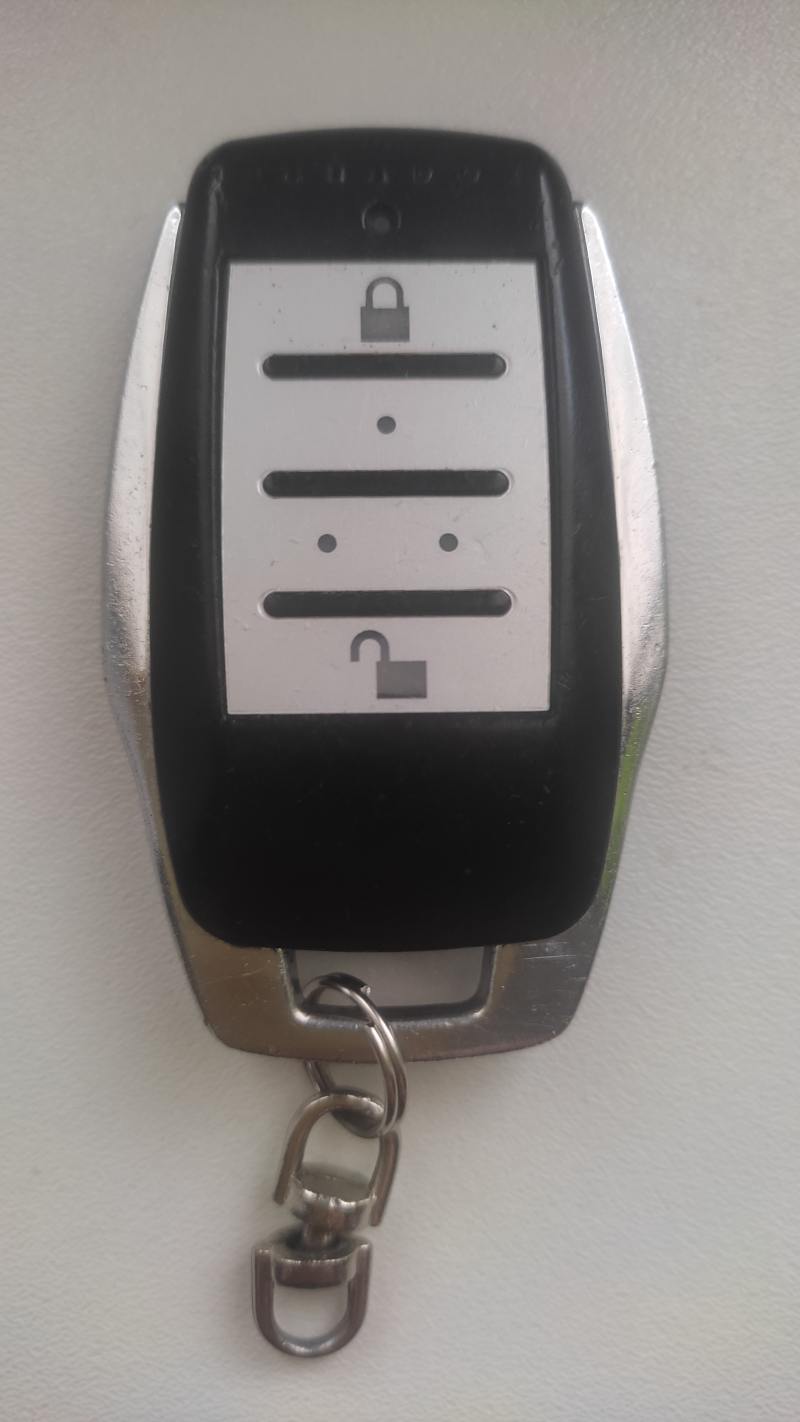 Bezdrátová 4 tlačítková klíčenka k uživatelskému ovládání ústředen Paradox na frekvenci 868 MHz, použité, funkční.