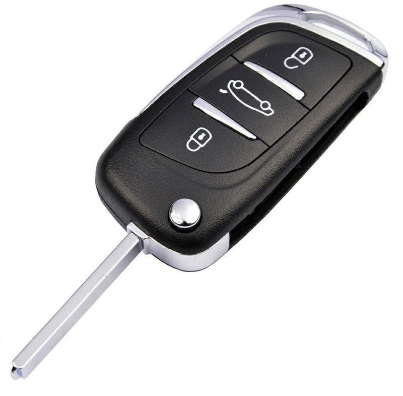 Náhradní obal klíče Citroen, 3-tlačítkový, bez elektroniky, čipu imobilizéru a loga.