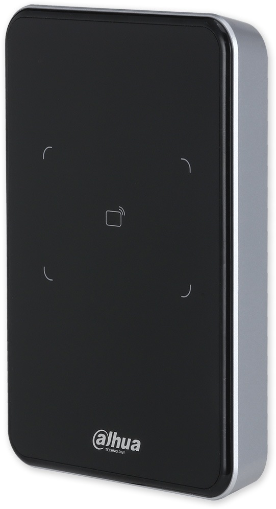 Systémová duální čtečka karet MIFARE Classic 13,56 MHz + EM 125 kHz Dahua ASR2100A-ME pro vnitřní nebo venkovní použití. Čtečka má univerzální výstup Wiegand 34 bitů a RS485.
