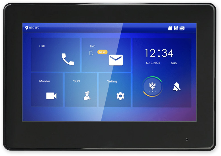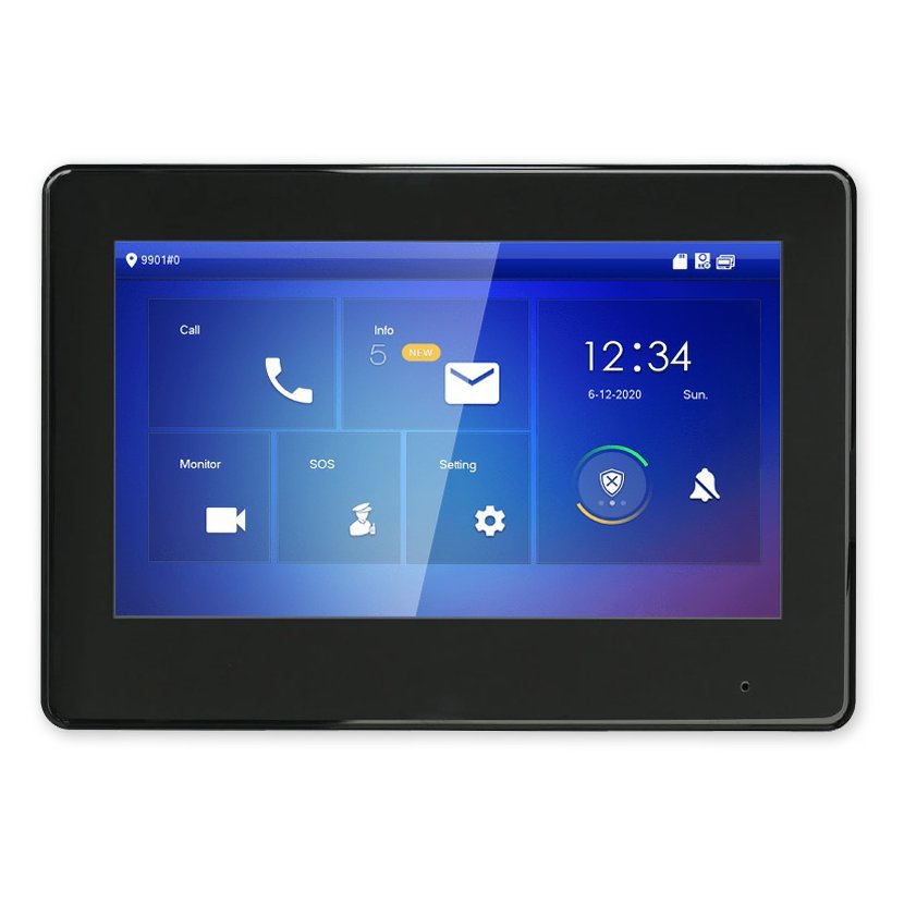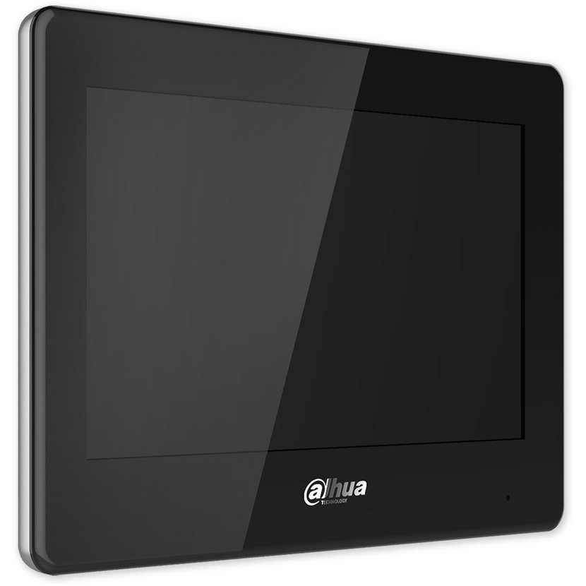 Vnitřní zobrazovací handsfree jednotka pro IP videotelefony řady DAHUA s barevným LCD 7" dotykovým displejem, slotem na microSD kartu, reproduktorem a mikrofonem. Je určena pro povrchovou montáž. Komunikace po SIP protokolu, ve venkovní jednotce musí být SIP firmware. Možnost připojení tlačítka zvonku od bytových dveří, 6 alarmových vstupů a 1 výstup, hodiny a datum.