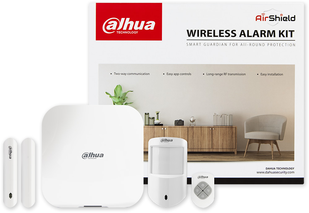 Zvýhodněná sada bezdrátového zabezpečovacího systému Dahua AirShieldART-ARC3800H-03-W2, ústředna LAN, 1x bezdrátový PIR detektor, 1x bezdrátový magnetický detektor, 1x bezdrátová klíčenka, komunikace s uživateli přes Wi-Fi 2,4 GHz nebo ethernetový komunikátor 1x RJ45 10/100M TCP/IP pomocí mobilní aplikace DMSS, neobsahuje GSM!